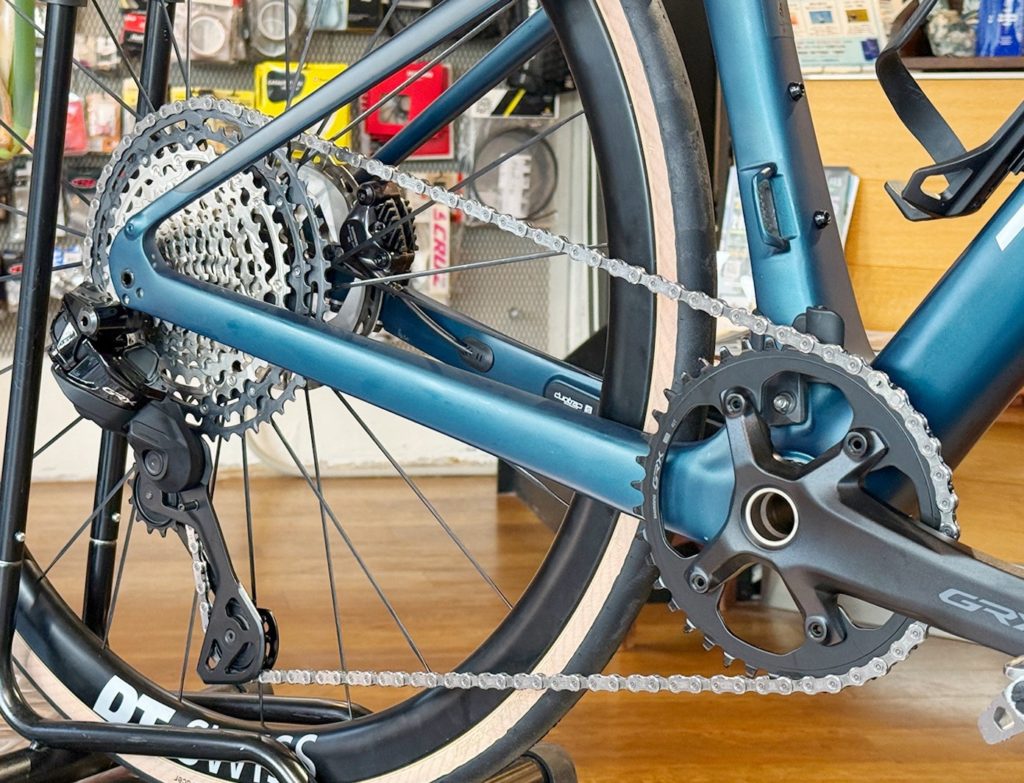 フロントがシングルになったことで、変速機もなくすっきりとした見た目になりました。
