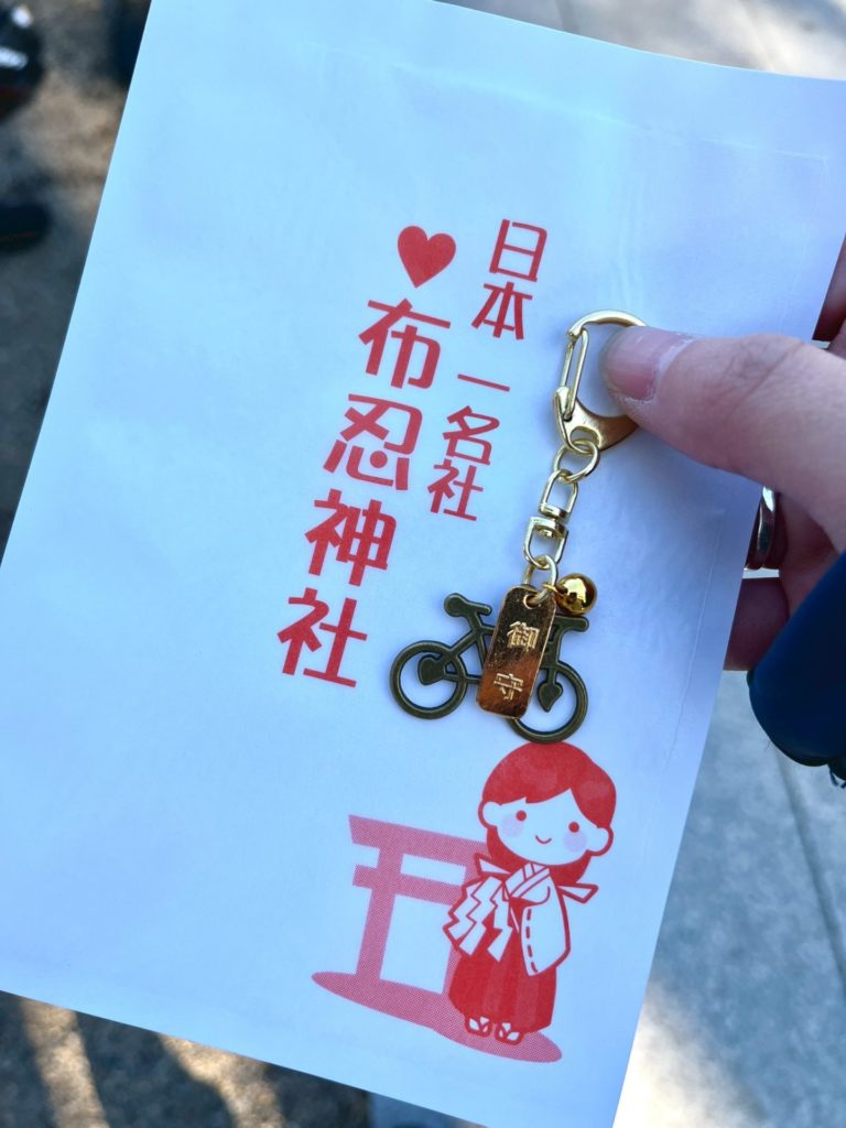 布忍神社には自転車モチーフのキーホルダー型のお守りもあります。