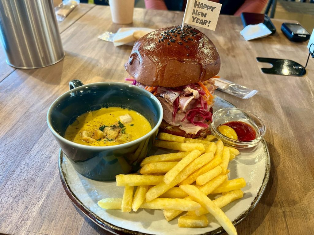 カレーやグラタンプレートなどなどランチメニューも豊富でしたが、今回はハンバーガープレートをいただきました。