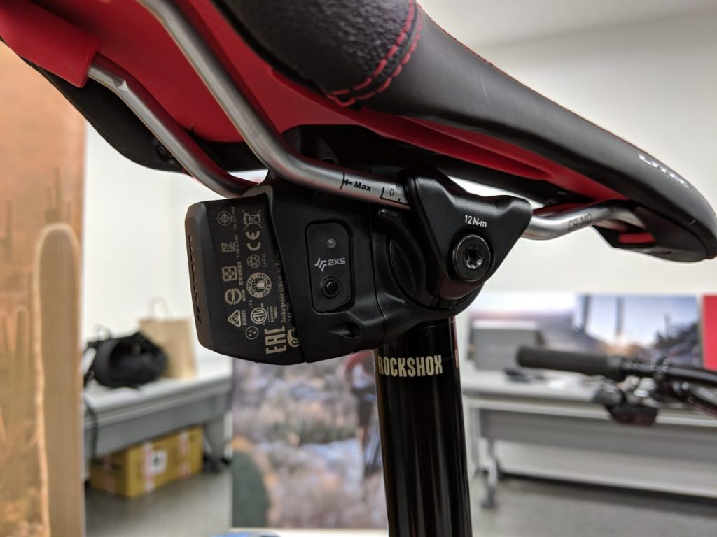 リアディレイラーとドロッパーシートポストに取り付けられたバッテリーは共通であることがSRAMの電動では意外と大きなメリットです。